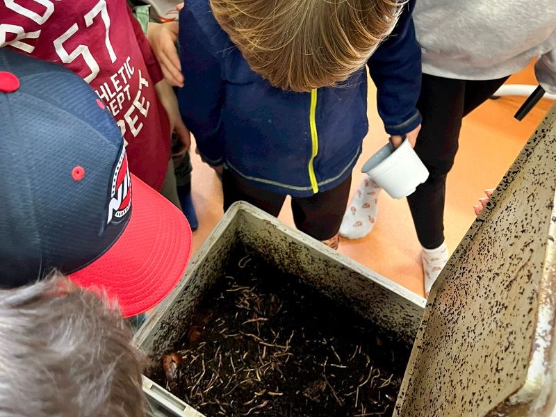 Součástí programu byla také exkurze zaměřená na vermikompostování. Děti se dozvěděly, jak lze půdní organismy využít při zpracování biologického odpadu, a seznámily se s principem fungování vermikompostéru. Pochopily roli žížal při rozkladu organické hmoty i vznik kvalitního přírodního hnojiva. Tento proces byl představen jako názorný příklad koloběhu živin v malém měřítku. Praktická ukázka umožnila sledovat jednotlivé fáze rozkladu a uvědomit si význam drobných organismů pro udržitelné nakládání s odpady i podporu půdní úrodnosti.